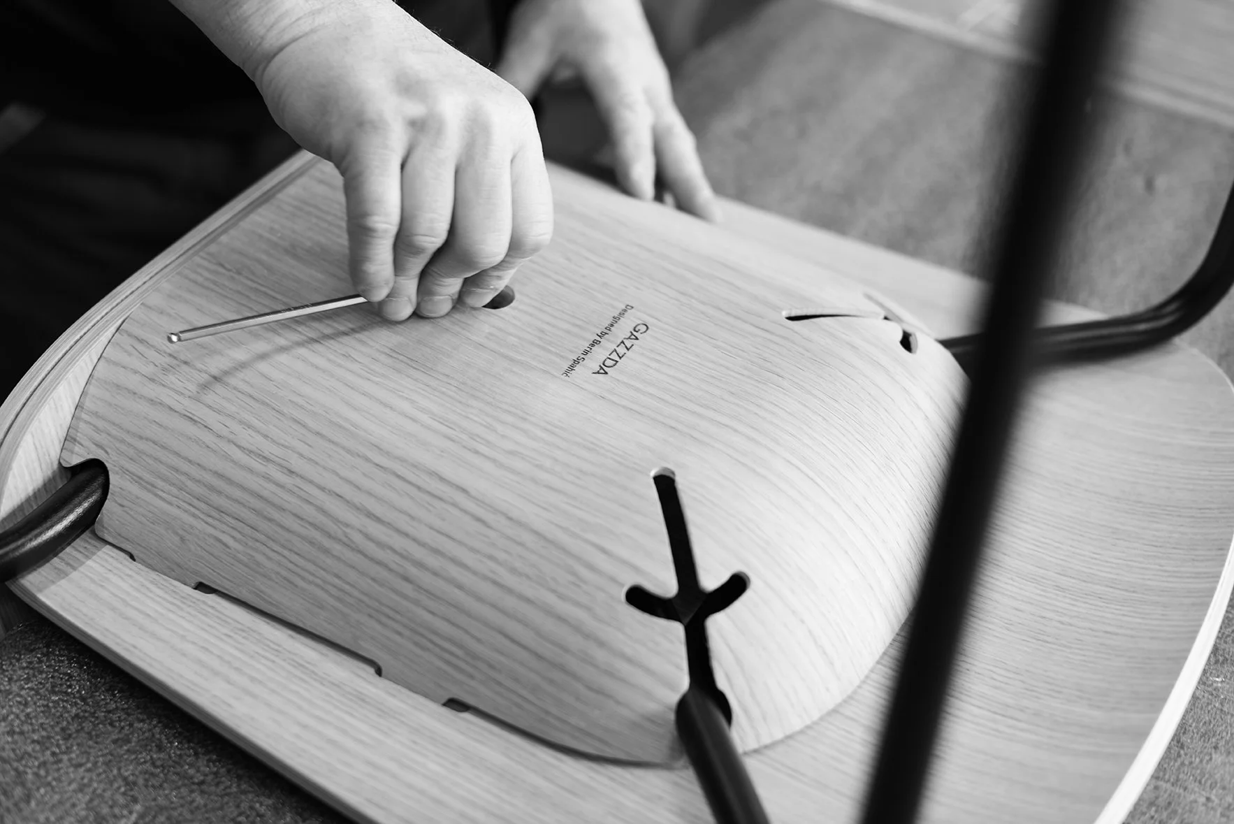 What truly sets the Book Chair apart is its innovative stacking box. Functionally, it safeguards the veneer and upholstery from scratches and dents when stacked and serves as a seat spacer. Visually, it seamlessly conceals structural joints beneath the seat, maintaining the chair's sleek appearance.