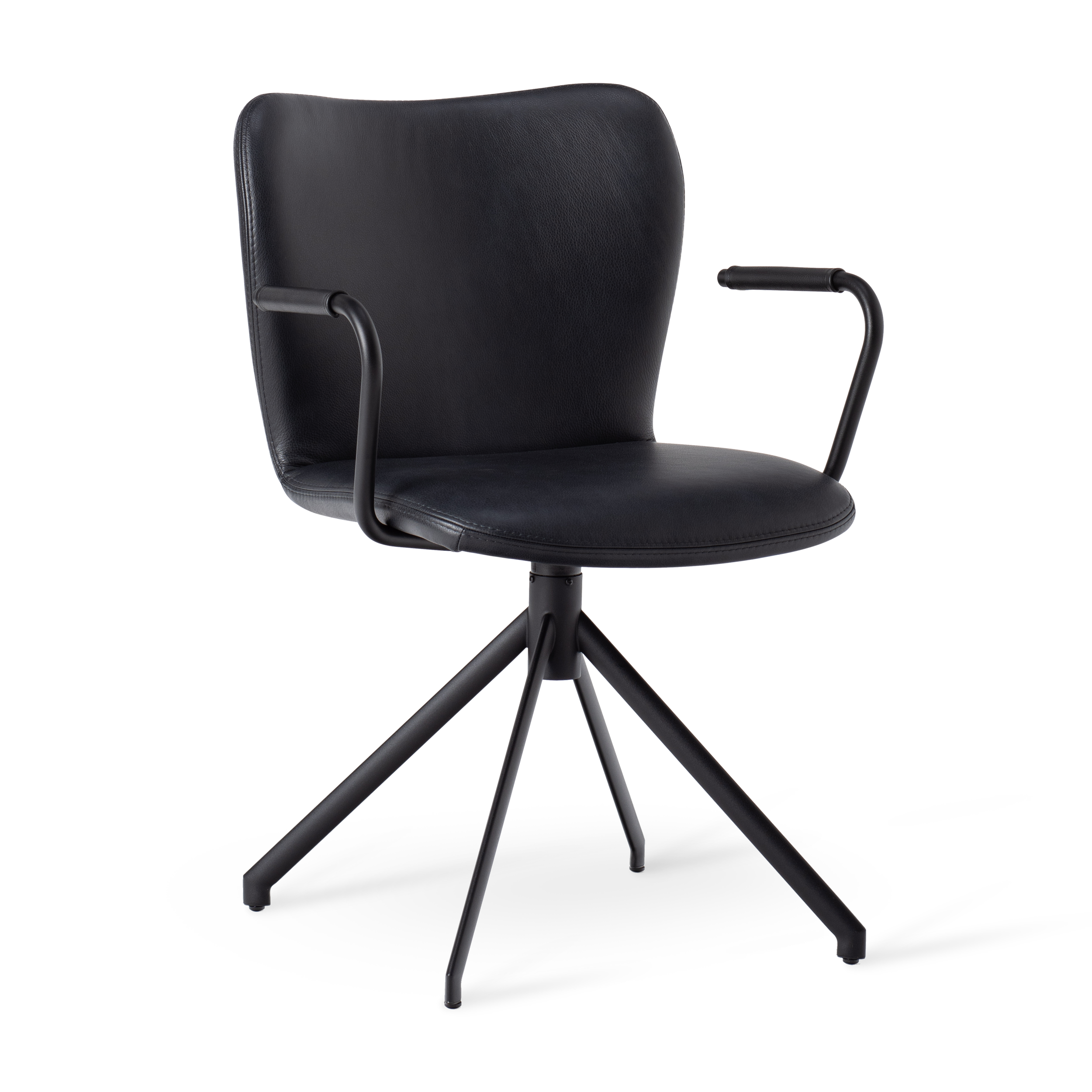 Different armrest and base options extend the possibilities of a single seat into multiple distinct configurations. With three armrest variations and two base types, Collara can respond to different functional and spatial requirements. The stackable four-leg base supports efficient storage and handling, while the swivel base introduces movement and flexibility where it is needed.